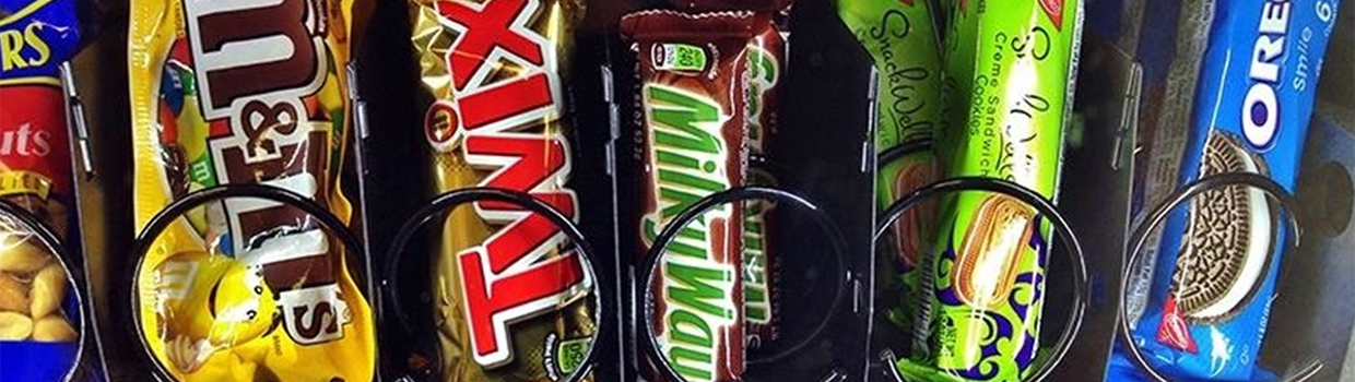 Taylor Vending Services carries a complete line of your favorite brand name snacks including chips, cookies, candies, gum, mints and pastries.